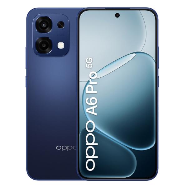 Smartphone OPPO A6 Pro 5G con connettivita` 5G, grande display AMOLED da 6,57 pollici con risoluzione Full HD+ e refresh rate a 120 Hz per immagini fluide e nitide. Equipaggiato con processore MediaTek Dimensity 6300 octa-core, 8 GB di RAM e 256 GB di memoria interna UFS 2.2 (espandibile tramite microSD su alcune varianti). Sistema operativo ColorOS basato su Android 15. Fotocamera posteriore principale da 50 MP con sensore secondario da 2 MP per profondita`, fotocamera frontale da 16 MP. Batteria da 6500 mAh con ricarica rapida SUPERVOOC fino a 80 W. Resistente ad acqua e polvere con certificazione IP69 e struttura robusta conforme a standard militari. Connettivita` completa con Wi-Fi Dual Band, Bluetooth 5.4, NFC, GPS e porta USB-C. Design moderno con cornici sottili e peso circa 185 g.