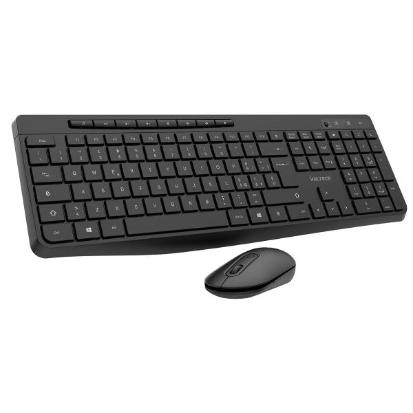 Kit composto da tastiera e mouse wireless del brand Vultech. Utilizza tecnologia wireless 2.4GHz con ricevitore USB per connessione stabile e immediata senza cavi. La tastiera ha design low profile con layout italiano e tasti funzione per uso quotidiano in ufficio o casa. Il mouse incluso e dotato di sensore ottico con risoluzione fino a 1600 DPI regolabili, adatto per attivita office, navigazione web e uso generico. Il prodotto e compatibile con sistemi Windows, Mac e Linux. Alimentazione tramite batterie (non incluse o variabili a seconda del lotto). Soluzione economica per postazioni PC desktop o notebook.