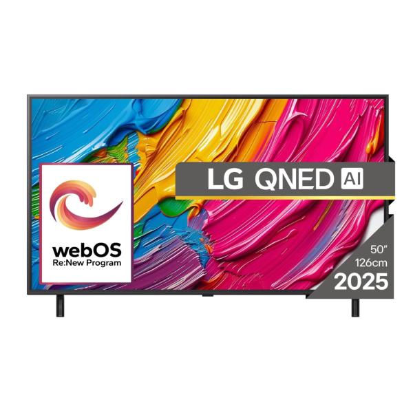 Televisore Smart TV da 43 pollici con tecnologia QNED e risoluzione 4K Ultra HD 3840x2160. Dotato di sistema operativo webOS 25, connettività Wi-Fi, Bluetooth, HDMI e USB. Supporta HDR10 e HLG, processore AI a7 Gen8 per upscaling e miglioramento immagini, tuner DVB-T2/C/S2 integrato e audio 20W. Design nero con compatibilità VESA.