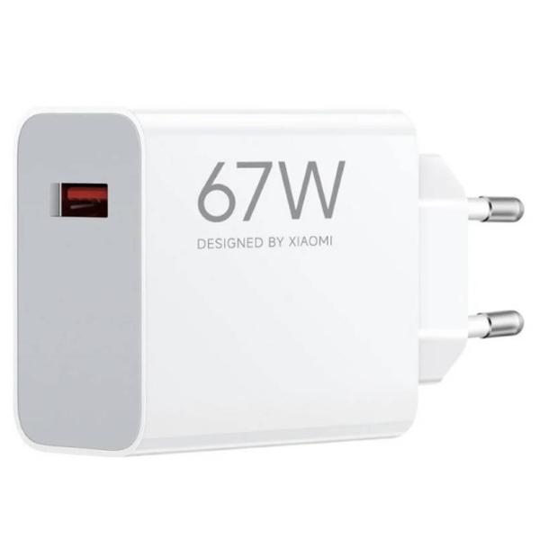 Caricatore da rete Xiaomi con tecnologia HyperCharge fino a 67W, dotato di porta USB-A e regolazione intelligente della potenza. Supporta tensione in ingresso 100-240V e uscita variabile 5-20V fino a 6.2A. Realizzato in materiale ignifugo con protezioni contro sovraccarico, surriscaldamento e cortocircuito, compatibile con smartphone, tablet e altri dispositivi.
